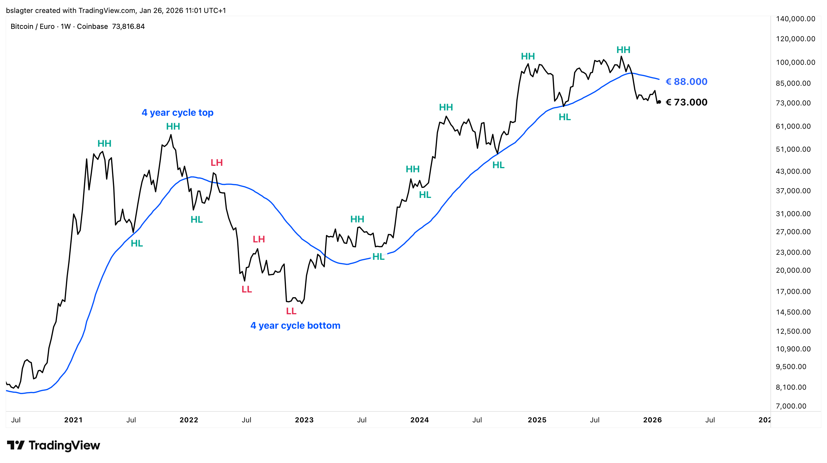 An den Finanzmärkten zahlt es sich aus, flexibel zu sein und sich schnell an veränderte Gegebenheiten anzupassen. Ein Indiz für die Rückkehr zu einem Aufwärtstrend wäre ein nachhaltiger Kursanstieg über den 50-Wochen-Durchschnitt. Dieser liegt aktuell bei 88.000 €, etwa 20 % über dem aktuellen Kurs von 73.000 €.