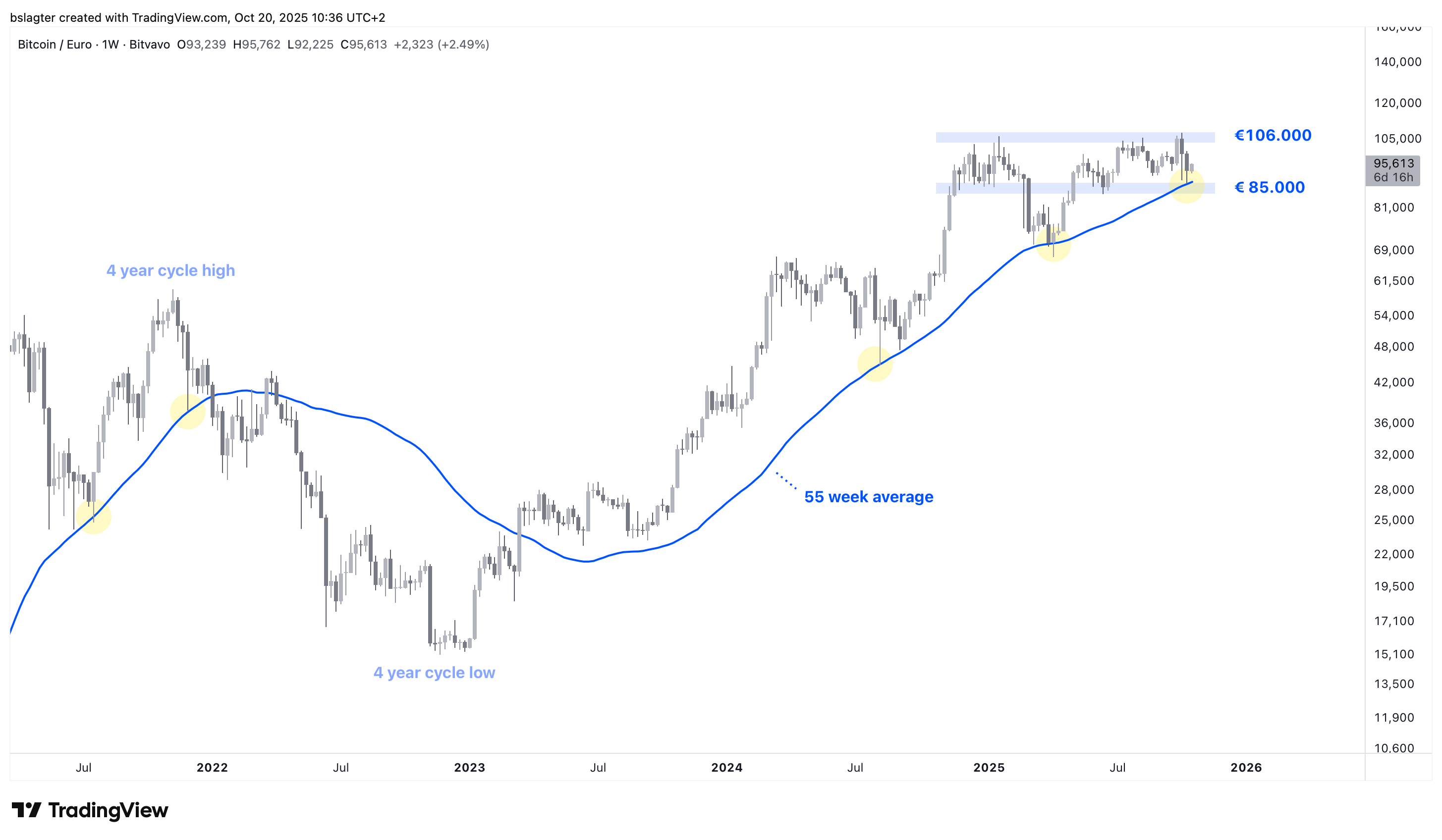 In the days leading up to the crash on Friday, October 10,Ā Bitcoin was trading above ā¬100,000. On Monday, October 6, we even saw an all-time high of ā¬107,500. It would have been great if the market had recovered quickly after the crash and left a nice V-shape on the chart, but that didn't happen.